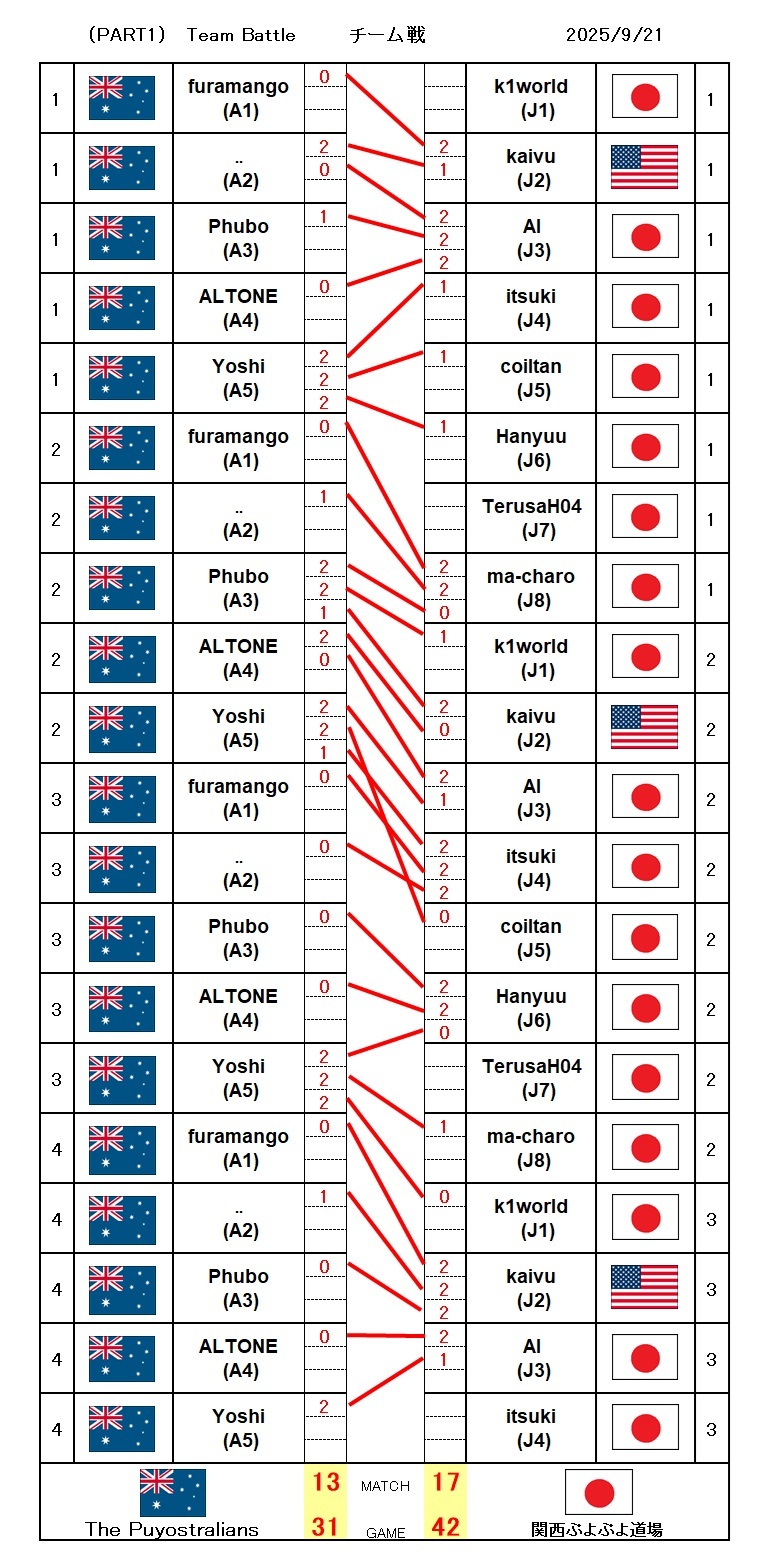 第0回世界連合対戦会VS関西ぷよぷよ道場対抗戦の結果